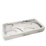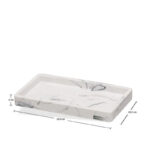 Nossa bandeja de lavabo possui um design minimalista e atemporal, apresentando um efeito visual de mármore branco com veios pretos, criando uma peça sofisticada que realça a beleza do seu espaço.