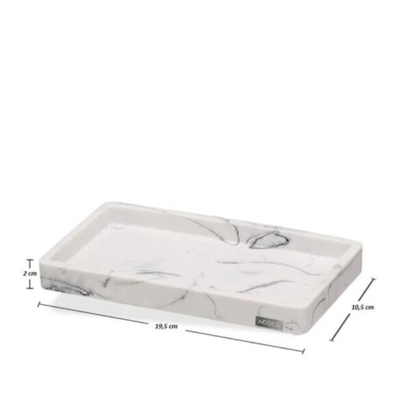 Com dimensões de 19,5×10,5cm, esta bandeja de banheiro é confeccionada em resina de alta qualidade, assegurando durabilidade e resistência. Seu formato retangular proporciona um espaço adequado para organizar e exibir seus itens de higiene pessoal e objetos decorativos.