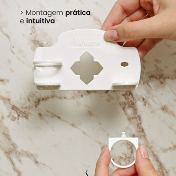 Posicione o Aromatizador Elétrico Via Aroma no centro do Suporte para Óleos Essenciais e Essências.