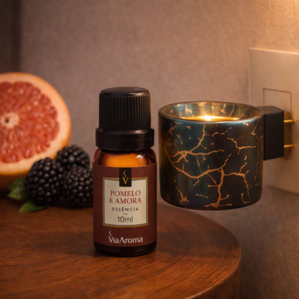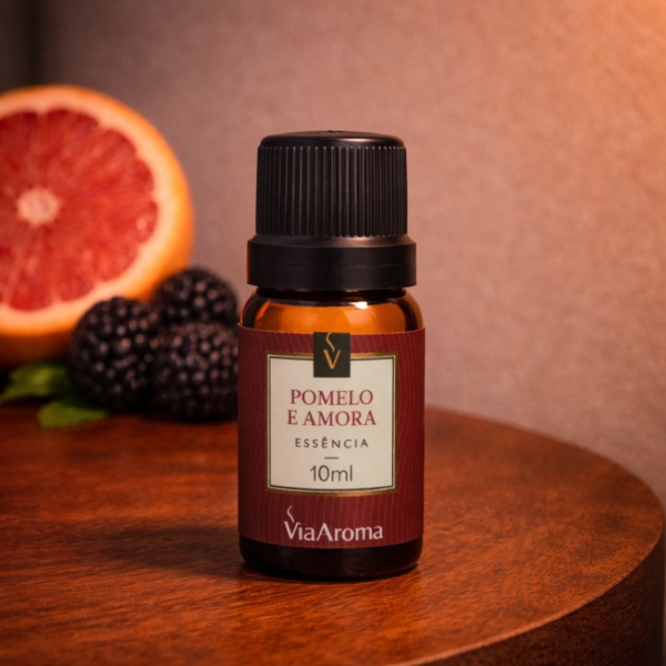 Qual cheiro é esse?  A Essência Pomelo & Amora Via Aroma é uma fragrância com notas de fundo de sândalo e vetiver, que juntas proporcionam uma sensação de relaxamento. Nas notas de saída, o toque de lima, laranja e pomelo traz frescor e vibração. No corpo, o cassis, o jasmim, o muguet e a amora conferem um aroma sofisticado e duradouro.