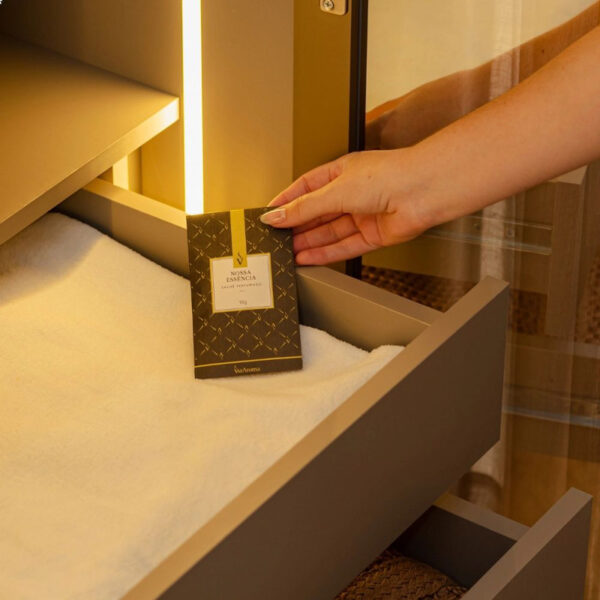 Também pode ser usado em gavetas no geral, deixando um cheirinho agradável nos objetos.