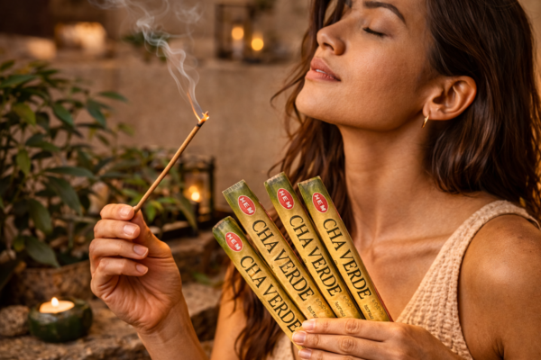 Kit 6 Incensos Hem Chá Verde – Ideal para Meditação, Yoga e Aromaterapia