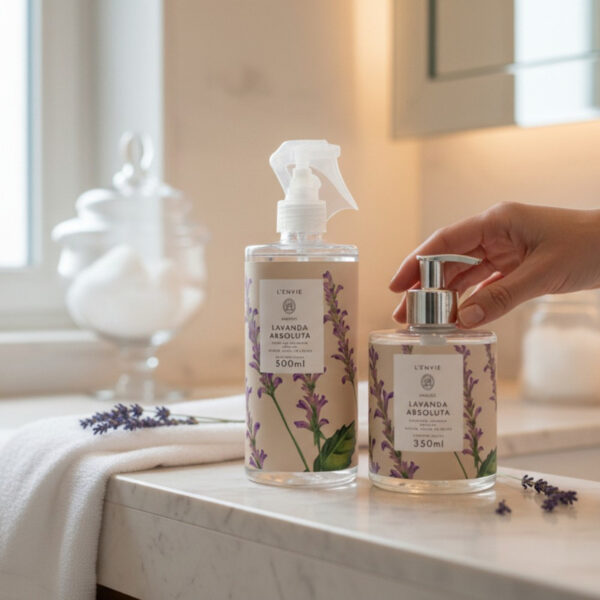 A Água Perfumada Lavanda Absoluta 500ml é indicada para perfumar tecidos, lençóis e roupas (secas ou pré-lavadas). Suas roupas ficarão cheirosas e macias! Pode também ser utilizada na perfumação do ambiente. Com uma nova identidade visual a linha Arabesc traduz suas fragrâncias por meio de aquarelas desenhadas nas embalagens. As ilustrações foram feitas por Bella Mary O’Mahony, ilustradora apaixonada pela natureza e residente na Nova Zelândia.