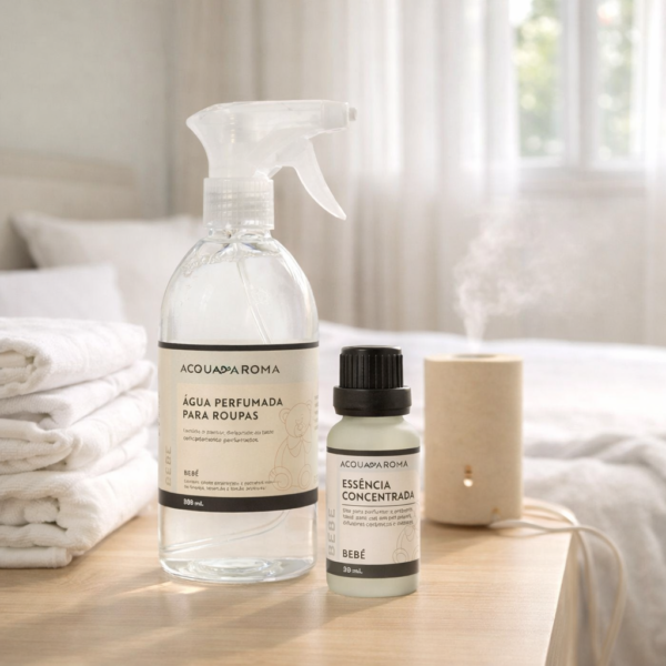 Kit Água Perfumada para Roupas Bebê 500ml + Essência Concentrada Bebê 20ml