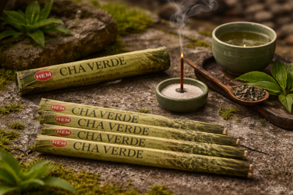 O incenso Chá Verde (Green Tea) da HEM traz uma fragrância leve, fresca e revitalizante, inspirada na suavidade natural das folhas de chá verde.