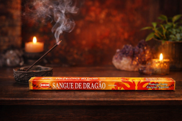 O incenso Sangue de Dragão (Dragon’s Blood) da HEM é conhecido por sua fragrância intensa, marcante e levemente adocicada, com notas resinosas que criam uma atmosfera envolvente e poderosa.