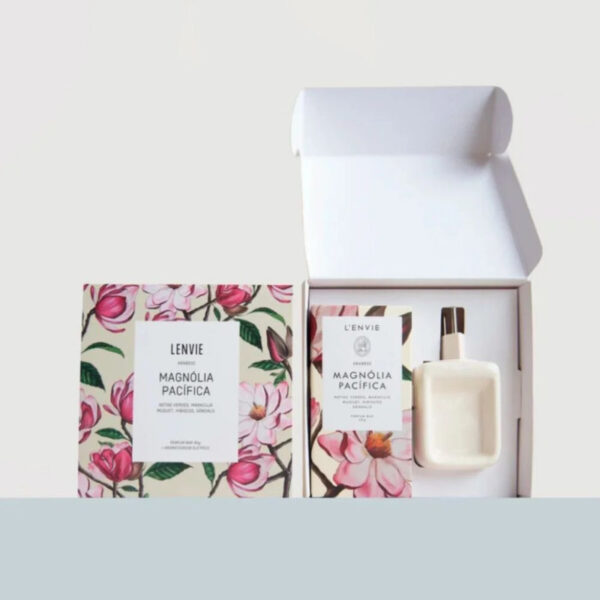 O Kit contém Barra de Cera Perfumada e Aromatizador Elétrico de tomada. Com alto potencial de perfumação e de expansão no ambiente, as barras de cera LENVIE chegam como uma das principais novidades. São quatro versões em fragrâncias já queridas pelos nossos clientes: Sunset Rosé; Figo Ambarado; Flor de Laranjeira e Magnólia Pacífica. Uma perfumação intensa em um formato exclusivo.