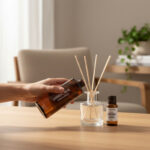 Fundo: musk e sândalo — criando um aroma fresco, relaxante e aconchegante para o ambiente.