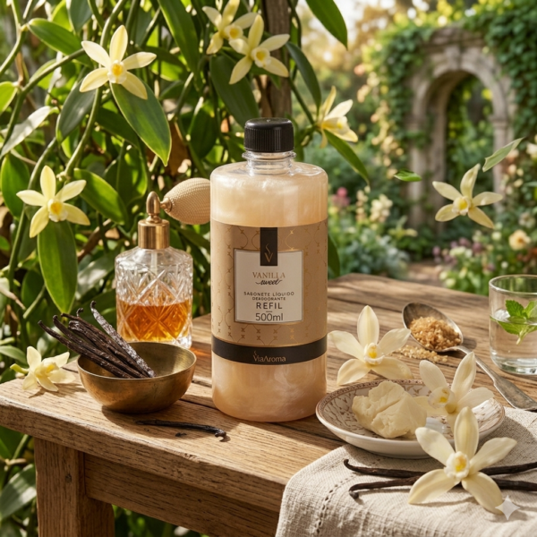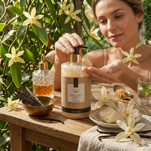 Reponha seu sabonete líquido favorito com o Refil Sabonete Líquido Vanilla Via Aroma e traga mais praticidade, economia e sustentabilidade para a sua rotina. Com ele, você reutiliza o frasco original de forma simples e rápida: basta reabastecer e pronto, seu sabonete já está pronto para uso novamente.