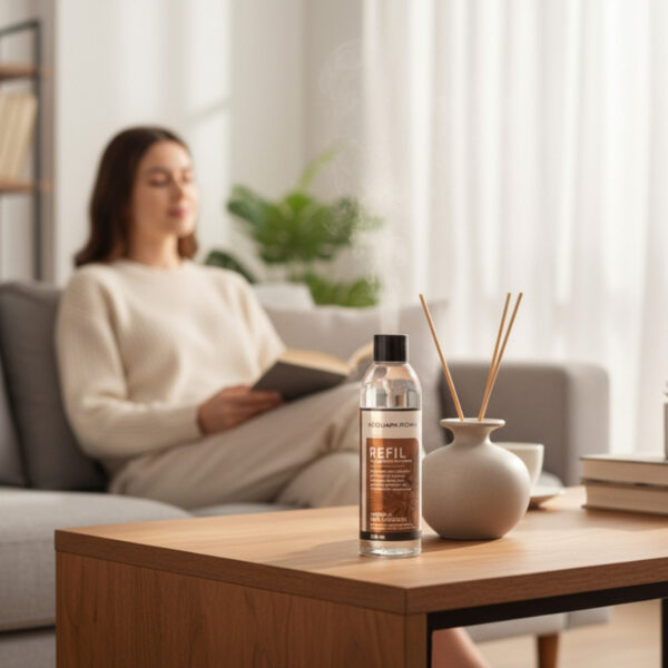O refil para aromatizante de ar captura a essência amadeirada de cedro e noz moscada, mantendo seu ambiente perfumado de forma constante e equilibrada.