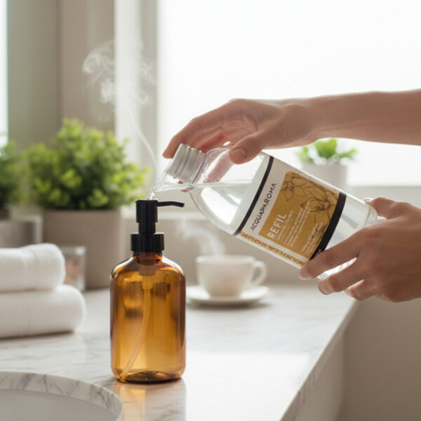O sabonete líquido de mãos em refil traz uma sensação incrível de bem-estar com a combinação de notas doces da baunilha com um toque sofisticado de bourbon.
