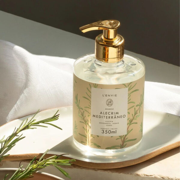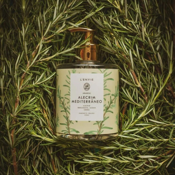 O Sabonete Líquido Alecrim Mediterrâneo 350 ml, da coleção Arabesc, pode ser utilizado na lavagem das mãos e do corpo. Sua embalagem prática e resistente preserva a qualidade do produto, proporcionando uma experiência agradável no dia a dia. Com um perfil olfativo verde, floral e aromático, esta fragrância une a leveza do Alecrim com o frescor cítrico da bergamota, suavidade do jasmim e a profundidade do cedro.