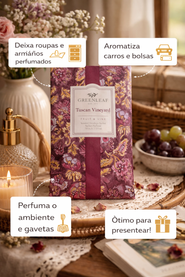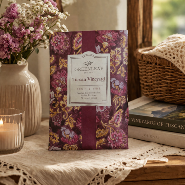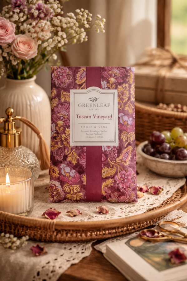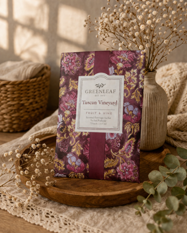 Transforme pequenos espaços em ambientes cheios de charme com o Sachê Perfumado Tuscan Vineyard Greenleaf Large. Com uma fragrância sofisticada e envolvente, ele combina notas frutadas e levemente adocicadas que remetem aos vinhedos da Toscana, trazendo uma sensação acolhedora e elegante ao ambiente.